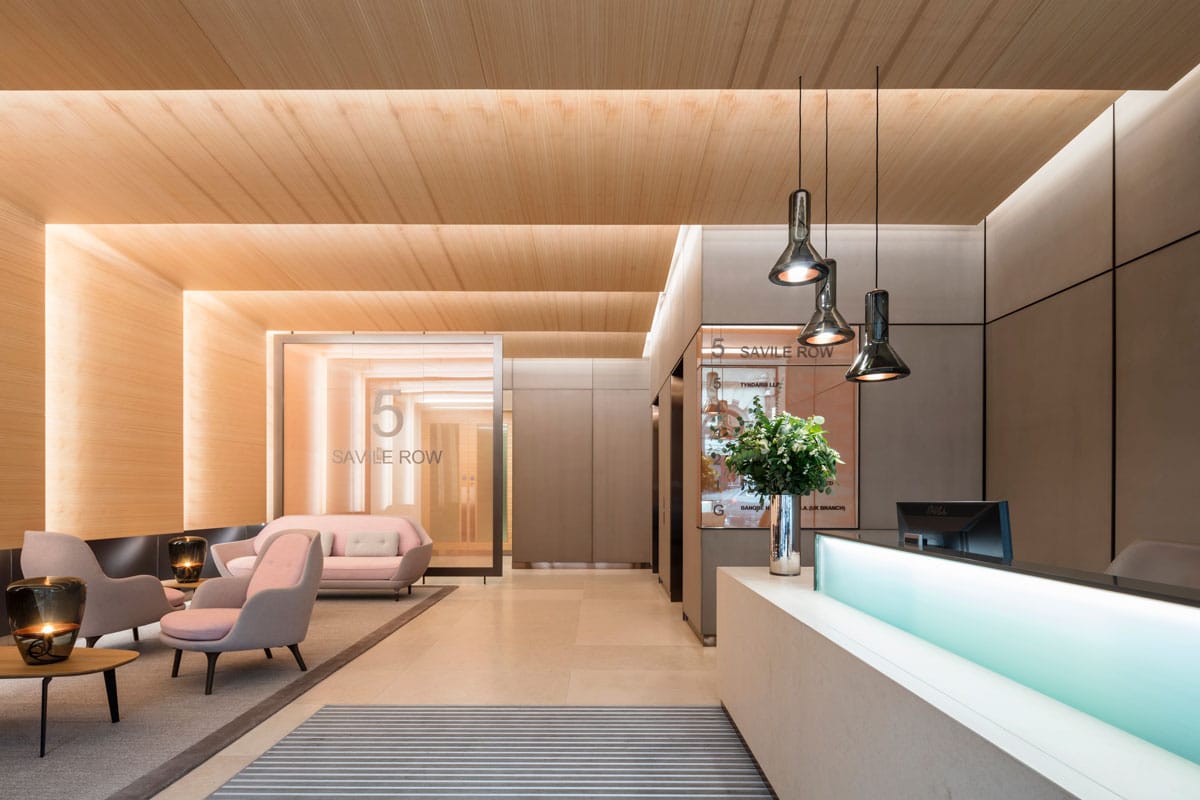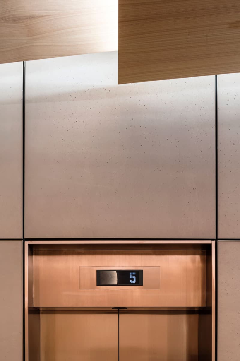 This niche modern office block, located on the east side of Mayfair in Central London, is surrounded by art galleries and bespoke tailoring shops. Cemento was commissioned to assist with the design, fabrication, and installation of lightweight panelling across several areas: the rear walls of the reception area, the signage wall, and the surrounds of the lift lobby doors. The panels were precisely detailed with inset anodised aluminium frames. The natural grey tone of our panels harmonises with other interior elements, including the expansive timber ceiling raft. Each aspect is carefully illuminated with LED lighting and complemented by the warmth of soft furnishings. This is a thoughtfully designed, bespoke project that fits seamlessly into its refined surroundings.